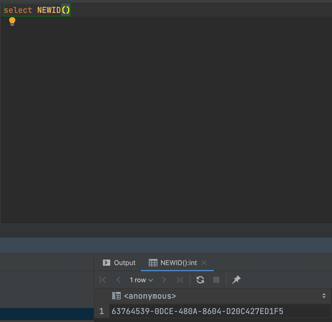 아쉽게도 MS SQL에는 random과 같은 랜덤 함수를 지원하지 않았다. 대신 uuid와 같이 unique한 난수를 생성하는 함수인 newId()를 지원해서 해당 함수를 활용해서 랜덤 함수처럼 사용하여 랜덤 row를 가져올 수 있다.