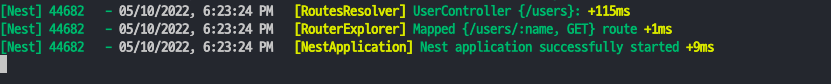 NestJs가 정상적으로 실행되는 것을 확인할 수 있다.